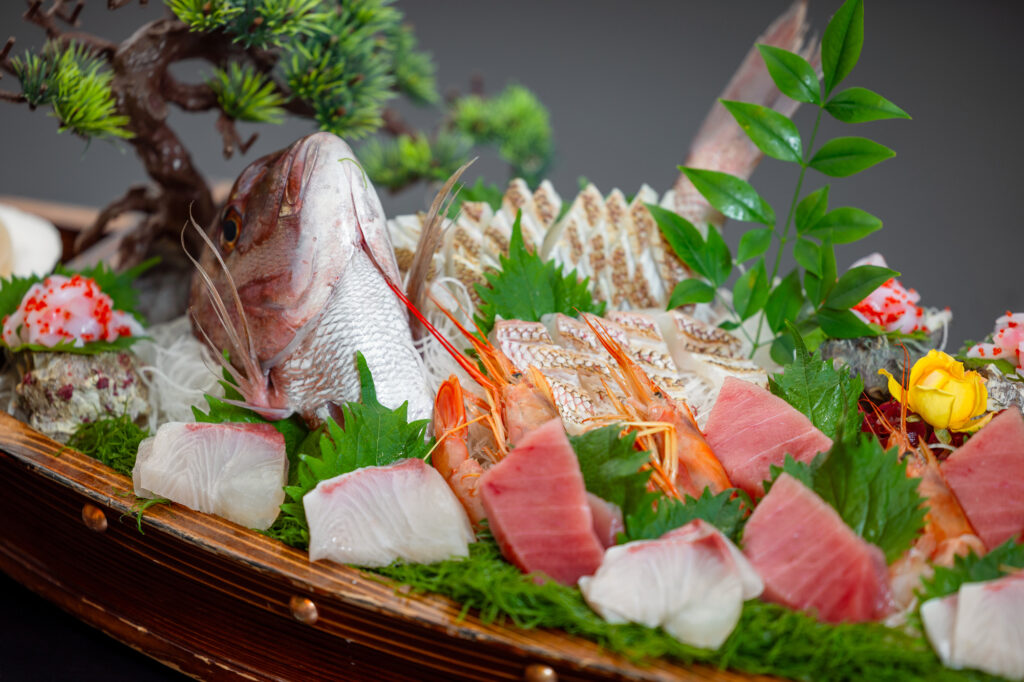 その地元網代に毎朝水揚げされる新鮮な魚介類をふんだんに使用した活き魚膳を是非お召し上がりください。